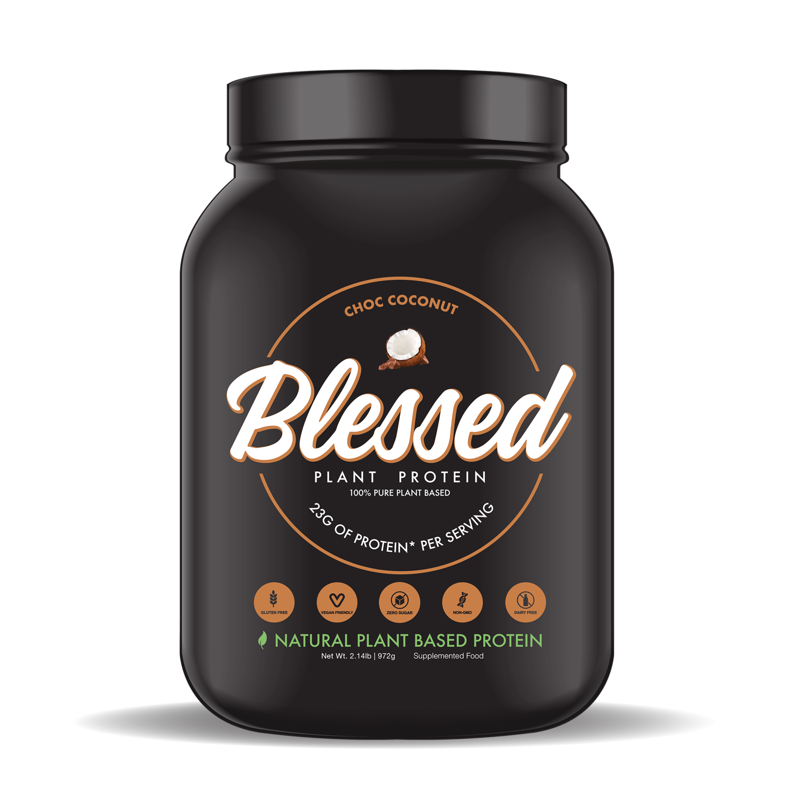 Blessed Protein's natural single origin plant-based protein is in your hands. The wholesome protein goodness inside this recycled tub contains an unparalleled formulation of the finest 100% sustainable raw ingredients to bless your body.