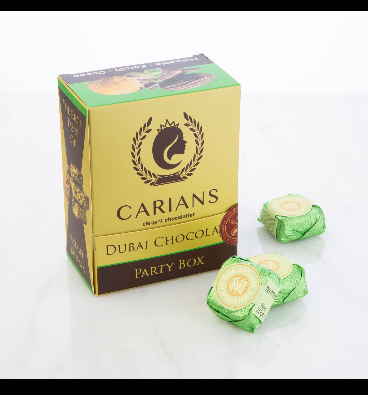 Experience the luxurious flavors of Dubai with Carian’s Gourmet Dubai Kataifi Pistachio Chocolate Bites, where rich, velvety chocolate meets crunchy pistachios and delicate kataifi (kunafa) strands.