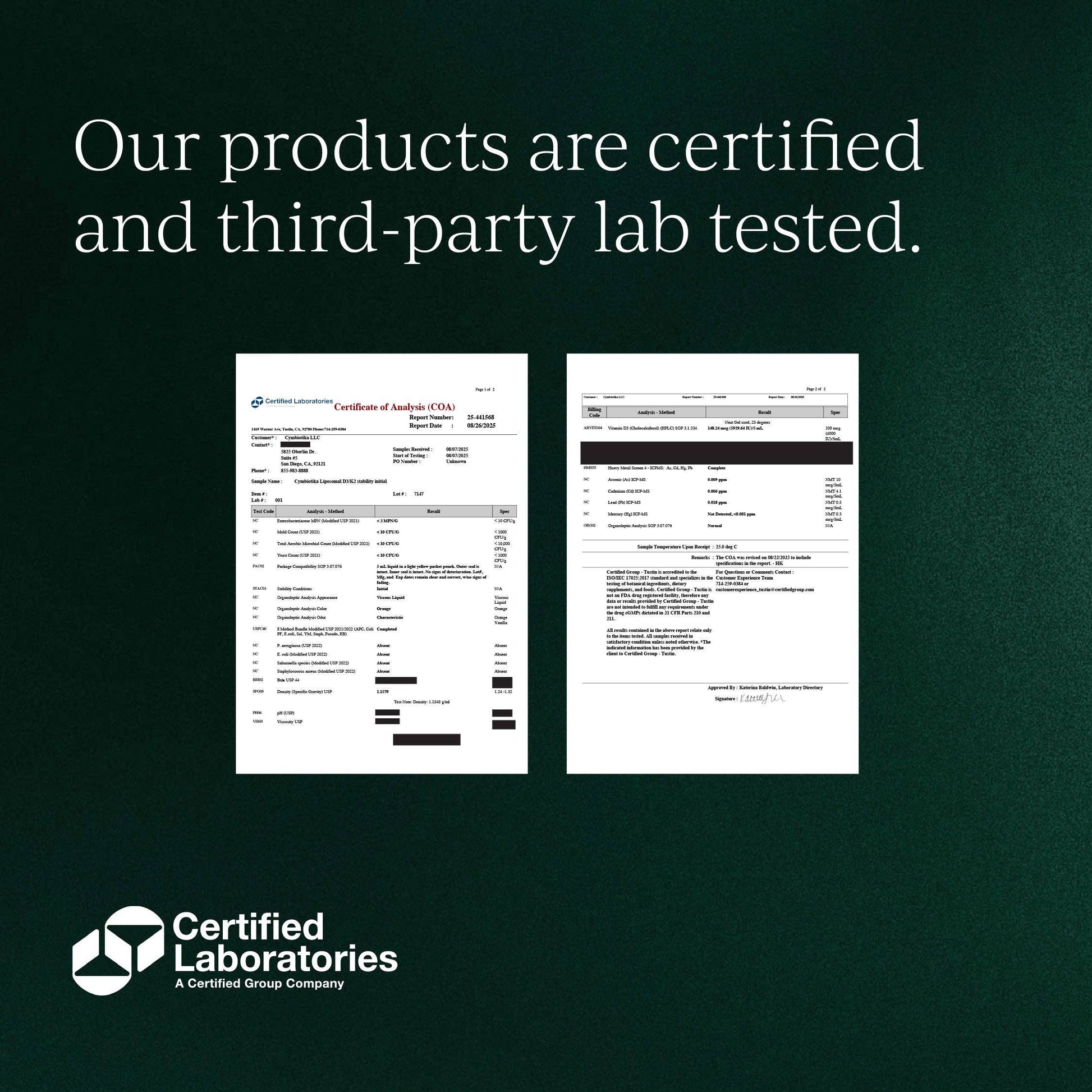 Tested for purity and safety by Certified Labs. Verified absence of harmful bacteria, heavy metals, and contaminants. Product meets all quality standards, with clear labeling and stability checks for your peace of mind.