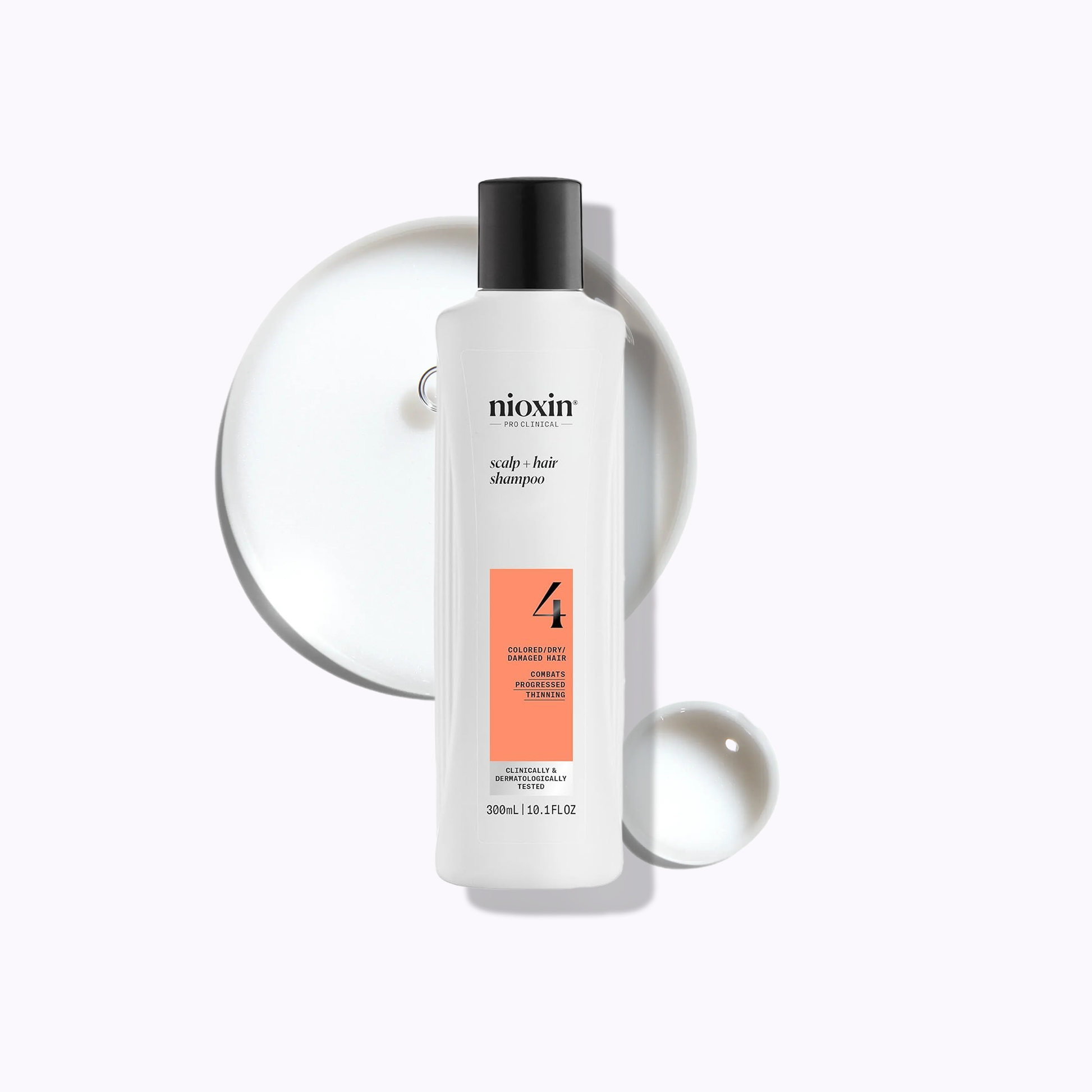 Nioxin System 4 Scalp + Hair Shampoo is specially formulated for color-treated, dry, and damaged hair with progressed thinning, delivering a deep cleanse that removes follicle-clogging impurities, excess oil, and environmental buildup. This purifying shampoo helps to refresh the scalp, protect color vibrancy, and improve the overall health of thinning hair. It also supports stronger, fuller-looking strands and preps the hair and scalp for optimal absorption of the accompanying conditioner and leave-in treatment. Ideal as the first step in the complete 3-part System 4 regimen for visibly denser, more resilient hair.